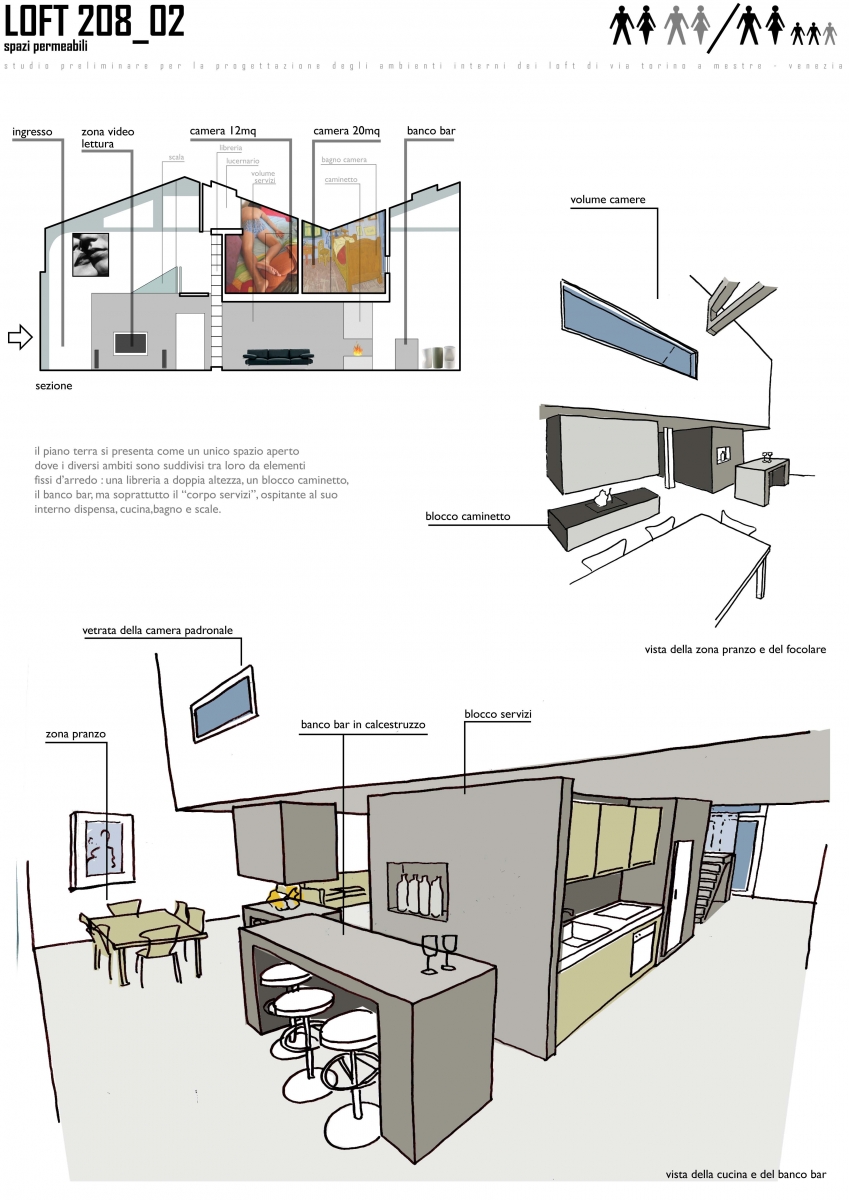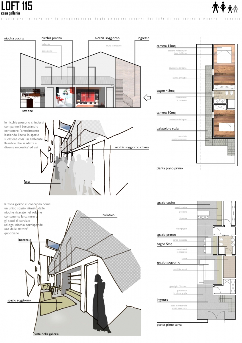 Progettazione preliminare, con studio tipologico in funzione del potenziale acquirente, di alcuni loft in via Torino a Mestre (Venezia)